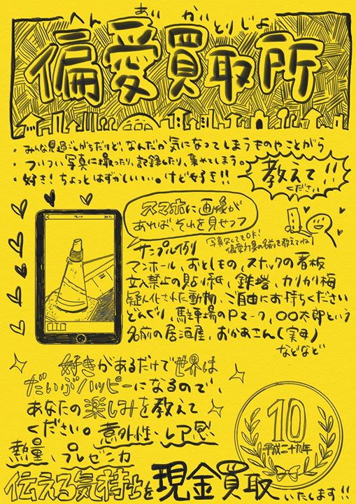 街中で見かけるとつい気になって写真におさめてしまうモノなど、個人的な偏愛を写真とともに語っていただき、写真のデータと引き換えに、偏愛の現金買い取りをします。