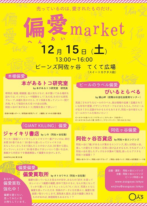 By エンジンズ Posted 2018/12/13 In 阿佐ヶ谷エンジンズ 【明後日開催! 偏愛マーケット】2018-12-132018-12-13https://www.n95.jp/wp-content/uploads/2014/09/n95logo_250-125.pngN9.5 INC.https://www.n95.jp/wp-content/uploads/2018/12/ccbd9a47e7a6ed2b2302.jpg200px200px 0 【明後日開催! 偏愛マーケット】 12/15(土)13:00〜 阿佐ヶ谷ビーンズ てくて 広場にて! お待ちしておりますっ◎ Recent Posts空き家活用すごろく!家でこもる人たちに送る「距離観コラム」。家でこもる人たちに送る「距離観コラム」。家でこもる人たちに送る「距離観コラム」。