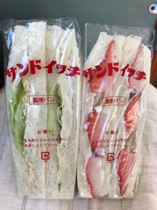 #サンドーレ のサンドイッチ。「昨日は女の人全然来なかったのに、今日は女の人ばっかり。そんな予感がしていちごサンド作っといたんだ〜。僕は女の人の心が読めるから。というか、半分くらい女なんじゃないかしら」とおじさん。この禅問答が毎回楽しみです。(ヤマモト)