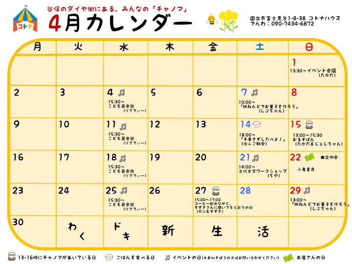 By コトナハウス Posted 2018/04/07 In コトナハウス 4月カレンダー2018-04-072018-04-23https://www.n95.jp/wp-content/uploads/2014/09/n95logo_250-125.pngN9.5 INC.https://www.n95.jp/wp-content/uploads/2018/04/b8f11864531135abca88.jpg200px200px 0 【修正版4月カレンダー】 4月のコトナハウスはこんな予定です。 おかしのいえ、古代文字、手巻きずしと盛りだくさん〜 そして、おるすばんも復活です! 保存保存 保存保存 Recent Posts空き家活用すごろく!家でこもる人たちに送る「距離観コラム」。家でこもる人たちに送る「距離観コラム」。家でこもる人たちに送る「距離観コラム」。