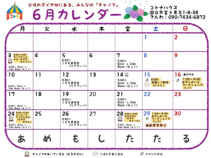 コトナハウス6月のカレンダーをアップします!