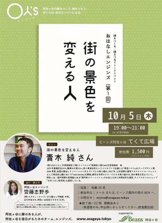 【10/5(木)】JR阿佐ヶ谷駅、ビーンズ阿佐ヶ谷でトークイベントあります。