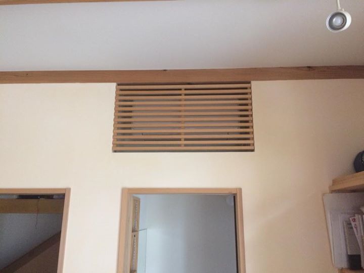 みかんハウスのコミュニティスペース「みかんスタジオ」にあるエアコンには木製のカバーがついています。エアコンを使用する際には空気が出にくいため、取り外して使うのですが、取り外しと取り付けが大変なので外したままになっていました。