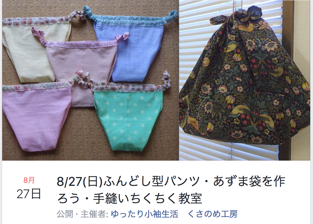 初心者さんも、小学4年生以上も、参加OKみたいです。イベントページを是非ご覧になって、「ふんどしパンツ、いいじゃないか〜」「あ、これなら自分もやれるかもしれないな〜」と感じたらぜひ。
